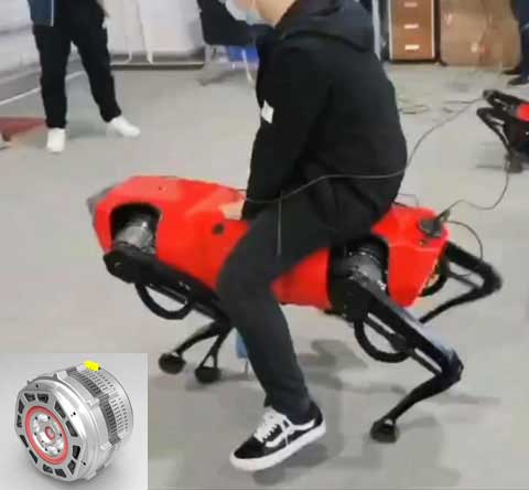 12自由度四足仿生機(jī)器人,整機(jī)12套關(guān)節(jié)電機(jī),單關(guān)節(jié)電機(jī)功率1kW,峰值輸出扭矩200Nm,最高輸出速度180rpm,電機(jī)重量2kg.